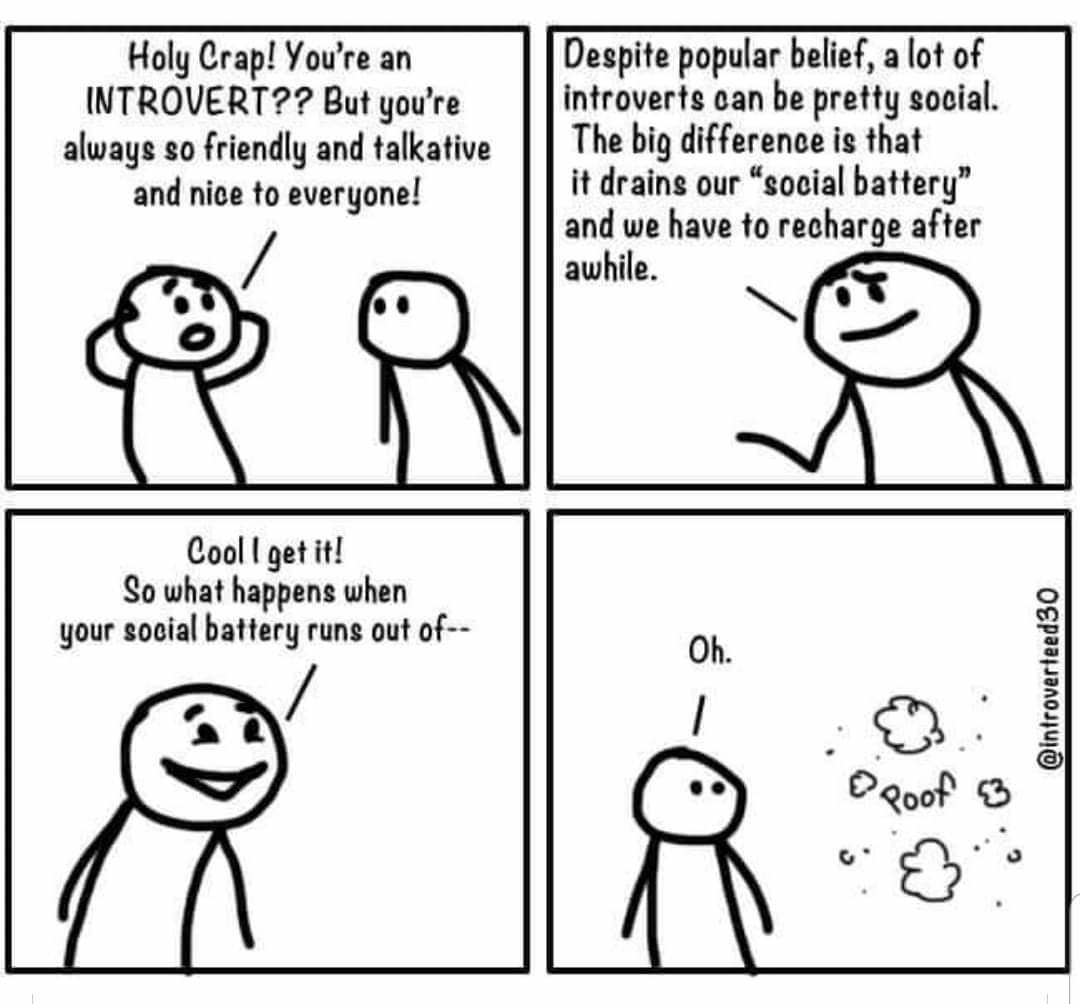 But for as social as he is, if he doesn’t recharge his battery he becomes “weird” and needy. Things that don’t bother him do, and he is just “off”.